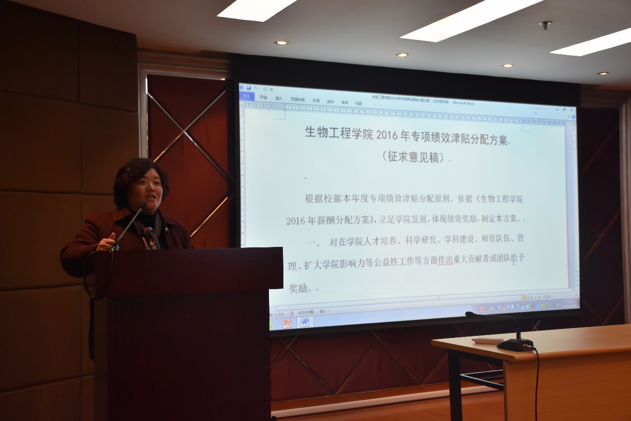 2016年11月29日,学院在实验18楼召开学院教代会代表会议,通报并讨论《2026年国际足联世界杯2016年专项绩效津贴分配方案》(征求意见稿)(以下简称《专项津贴分配方案》)。30多位代表到场,工会主席蔡海波主持会议,学院党委书记陆兵、院长庄英萍到场并解释《专项津贴分配方案》。