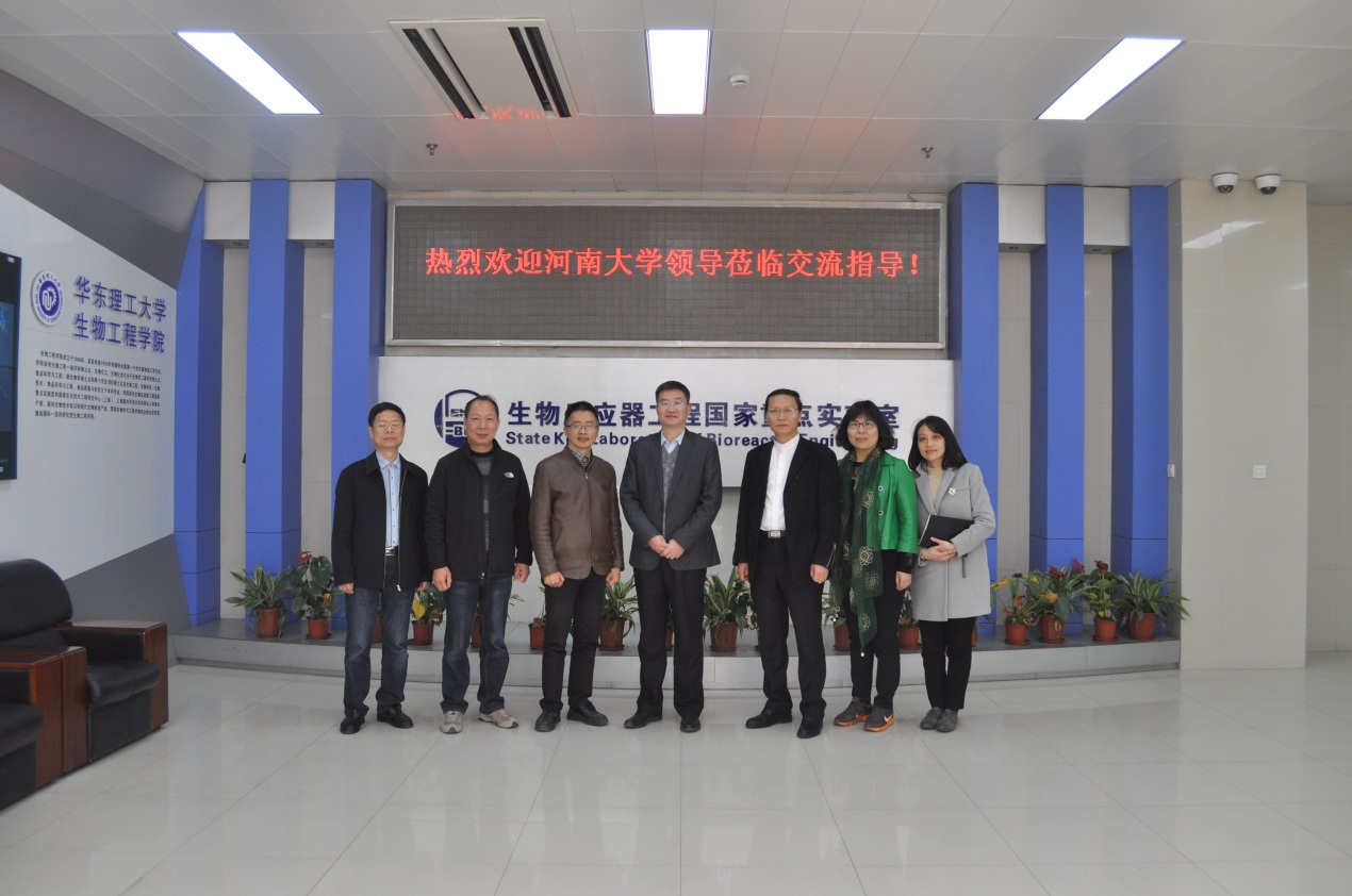 3月8日下午,河南大学副校长刘先省教授、医学院常务副院长马远方、医学院副书记王莹、医学院副院长李钦一行访问我院,重点就生物反应器工程国家重点实验室的平台建设和运行机制展开调研。学校科研院常务副院长朱学栋、我院党委书记陆兵、院长助理周燕、生物反应器工程国家重点实验室常务副主任谢静莉等参与接待。