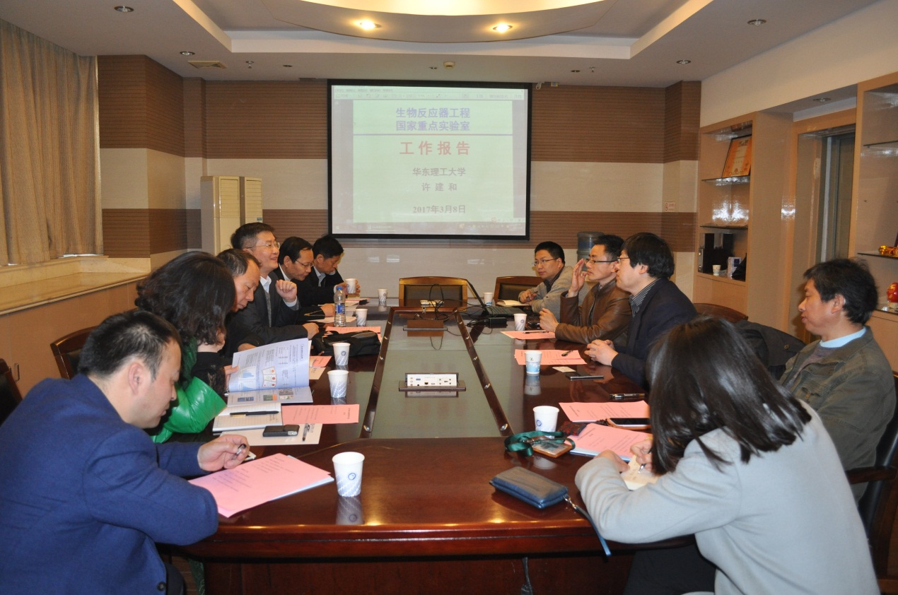 朱学栋代表学校对刘先省一行表示热烈欢迎,并介绍了我校的发展历史和科研成就。陆兵、谢静莉、周燕等介绍了我院及生物反应器工程国家重点实验室的成果和管理机制,回答了考察团的提问。