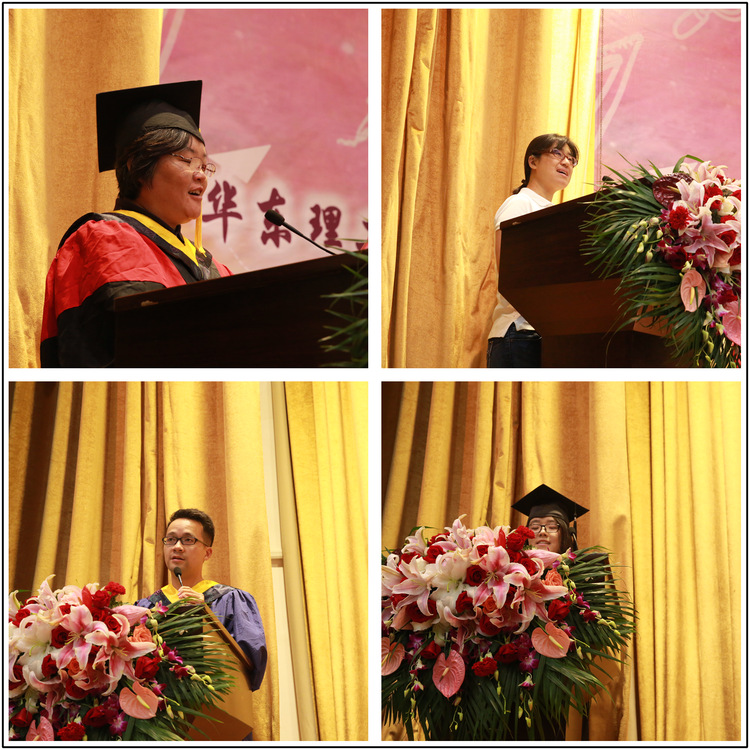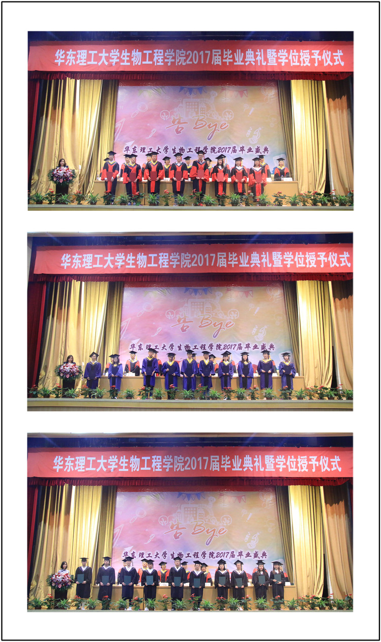 典礼上生工133班班导师高淑红代表学院教师向毕业生们表达了学院的浓浓惜别之情,“学院为同学们的成绩感到自豪,希望大家常回来看看,看一看学院的发展,再来品尝一下华理的红烧肉。”丁健健、姚溢融代表研究生、本科生毕业生发言,“分别,是为了下一次更好的相遇,老师们,同学们,我期待着与你们再度相逢”。随后,2017届毕业生们向生工学院送上了精心准备的礼物——手工制作的纪念相册,既承载着生工学子四年来浓浓的回忆,也承载着满满的爱!生工学院院长庄英萍在毕业寄语中祝贺2017届学生顺利毕业,感谢大家为学院发展做出的贡献,并希望大家子带着华理生工的印记,脚踏实地、勇于挑战、精诚合作,在自己选择的人生道路上,走出一片光明的未来。
