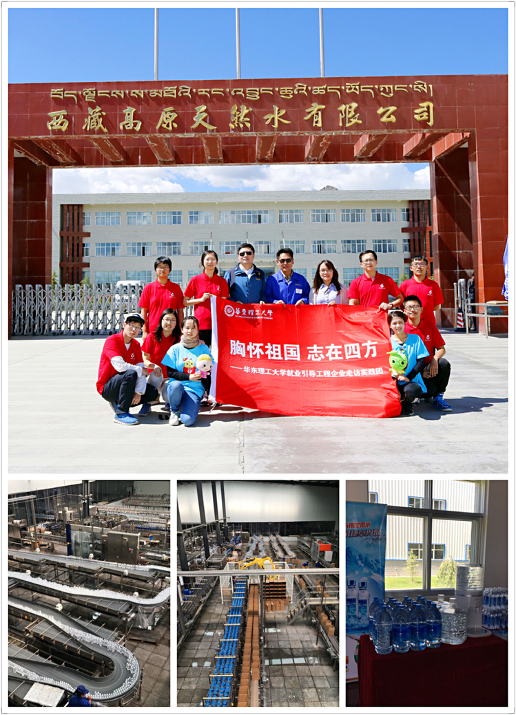 “我们的产品通过网络媒体和中铁、中石化等物流渠道输送到全国各地。我们深挖西藏得天独厚的天然饮用水资源优势,通过科学研究与创新开发,致力于把‘易捷·卓玛泉’品牌打造成为西藏天然饮用水行业的新名片”索朗次仁说道。师生们也了解到,近些年高原天然水公司积极创新业务,除了生产瓶装水,其自主研发的真空压缩桶装水及专用的饮水机更是令人眼前一亮。这种桶装水较于传统技术,可以确保从包装到饮用全过程隔绝空气进入,从而防止了细菌污染。