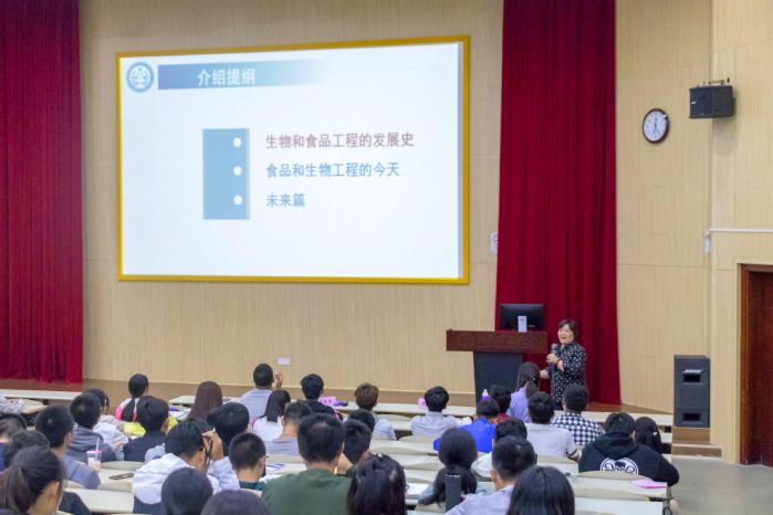 10月11日晚,2026年国际足联世界杯院长庄英萍教授应邀做客第99期生工讲坛。面向2018级本科生讲授“新生第一课”——生物工程、食品工程的昨天、今天和明天。