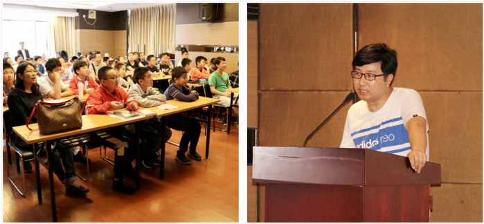 实验室主任助理王玮副教授首先给同学们带来了“基因组测序与基因突变”为题的科普讲座,通过一个多小时的报告,让同学们对人类基因组计划的起始,和乙醛脱氢酶的基因突变对酒精降解能力的影响有了进一步的了解。王老师的生动有趣的讲解令现场同学产生了浓厚的兴趣,听讲过程中大家聚精会神,精彩之处掌声热烈,现场气氛活泼热烈,随后的互动环节中都提出了富有专业性和想象力的问题。讲座也坚定了同学们认真学习科学文化知识,培养动手能力以及奉献社会的决心。
