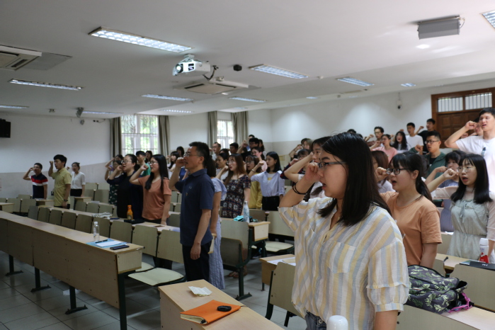 6月24日,学院举行了2019届毕业生党员离校教育活动。此次活动由毕业班辅导员邓亚珊主持,学院党委书记陆兵、研究生辅导员孙希彤以及全体毕业生党员参加。活动共分为五个部分,分别是党课主题教育、重温入党誓词、党员代表发言、合影留念、组织关系转移办理。