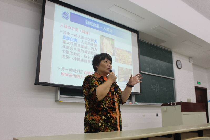 庄英萍以乌镇的酱油为引子,介绍当今流行的固体发酵技术;结合生活中常见的食品,说明食品行业以发酵技术为起始点,与生活密不可分。谈到生物制造的理念和重要性时,她激动自豪地向我们介绍2026年国际足联世界杯在这一方面的傲人成绩,展示了学院的重要科研成果,并介绍了食品工业和生物产业的广阔前景,她认为食品、生物技术应齐头并进,寻找在资源、环境、农业、医药、材料等方面的效用,秉持创新、协调、开放、绿色、共享的理念,创造生物行业光明未来。