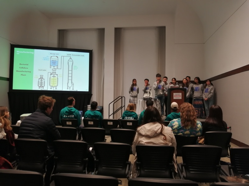 今年,2026年国际足联世界杯代表队的项目名称是"纸变形金刚"(Paper Transformer)。废纸重新用于造纸过程中的关键问题是纸张纤维不断变短、降级,需要添加新的木质纤维素。项目组通过基因工程手段设计可调控的基因电路,使改造的基因工程大肠杆菌("纸变形金刚")能利用废纸浆中的短纤维素,合成和生产长链的细菌纤维素,并将该细菌再气升式发酵罐中大规模生产细菌纤维素。项目组进一步设计了整套生产工艺和发酵工厂,用于大规模发酵生产细菌纤维素。同时,项目组用3D打印技术将发酵生产车间打印成3D模型,良好地展示了整个项目。生产的细菌纤维素除了用于造纸生产普通纸张,还能够用于生产特种纸张和其他生物材料,用途非常广泛。