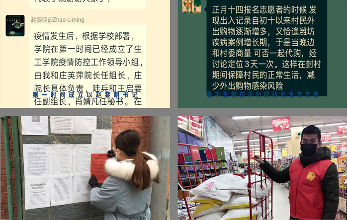 为进一步贯彻落实习近平总书记重要指示精神,积极响应“推进新冠肺炎疫情防控和经济社会发展工作”,鲁华生物技术所研究生第一党支部与第二党支部联合于3月20日开展了“把初心落在行动上、把使命担在肩膀上”主题党日活动,并携手制作了抗击疫情的专题视频。