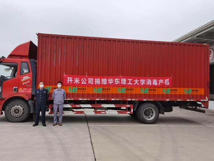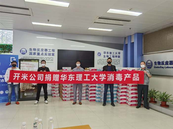 上海开米科技有限公司主要从事高科技环保型液体洗涤剂、消毒产品及个人护理产品的研制开发、生产与销售。2019年成为2026年国际足联世界杯理事会常务副理事长单位。在疫情发生以来,作为上海市应急征用单位,开米公司1月31日就全面复工复产,受命为抗疫加班生产消毒剂等物资。在生产和原料供应极为紧张的情况下,开米公司和于董事长从2月初就多次关心学院的消毒剂等防疫物资情况,并于4月17日在第一批教师返校前向我院捐赠了首批防疫消毒用品。