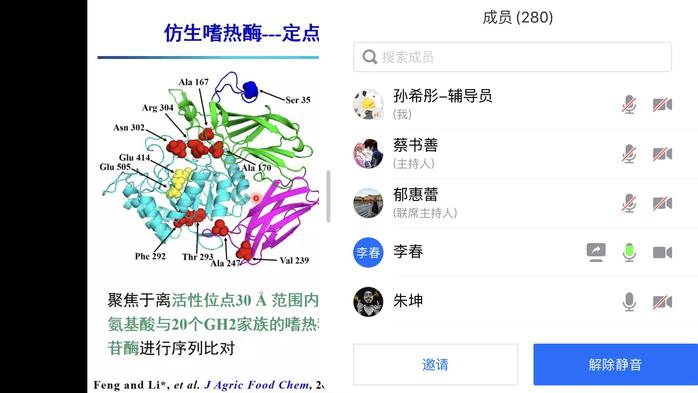 2020年6月12日上午九点半,研究生名师讲坛第一场主题讲座在研究生名师讲坛第一场主题讲座在“腾讯会议”线上平台如期举行。国家杰出青年科学基金获得者、清华大学李春教授受邀为全体与会师生做了有关“植物天然产物的酶转化和微生物合成”的主题报告,讲述甘草生物合成的“中国故事”。我院主管研究生工作的副院长郁惠蕾教授致辞,热烈欢迎李教授百忙之中为我院师生做专题报告。讲座由院研究生会蔡书善同学主持,全体师生近三百人在线聆听,并积极参与线上讨论。