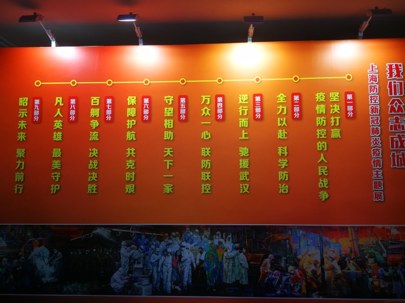 此次展览主题共分为九个部分,共同记录了上海同全国人民团结一心共同抗疫的经历,总结了这段时间里来之不易的抗疫成果,全面展示了上海市委、市政府在党中央坚强领导下,依靠人民群众、全面动员部署、整合各方力量,为全国疫情防控大局、为人民生命健康和经济社会发展交出的优质上海答卷,进一步彰显了上海城市精神和城市品格。大家在工作人员的讲解下,详细了解作品背景,仔细观看重点作品。当展馆的背景墙上涌现出一批批抗疫英雄时,大家纷纷上前合影。在感想墙前,每位同志都积极参与,写下了对祖国美好的希冀及对抗疫英雄由衷的钦佩。