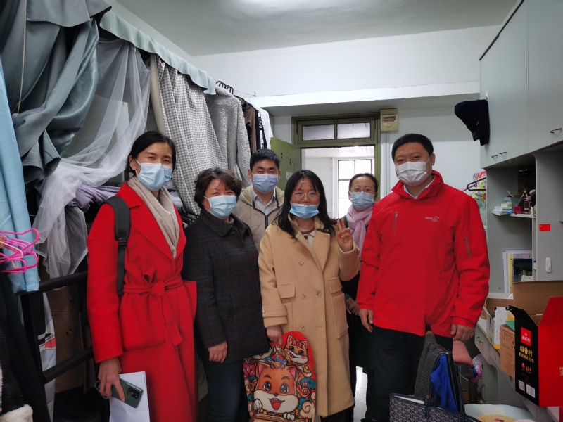 学院领导一行对寒假留校学生进行了走访,并代表学院送上了新春祝福和慰问礼包,详细询问了留校学生寒假学习生活安排和家乡的疫情情况,认真了解了学生各方面的需求,叮嘱他们要注意自身安全,利用假期加强学习,及时反馈遇到的问题,多和家长及老师沟通。一名家在疫区的同学表示,学校和学院关心留校学生,帮助她解决了很多不便,今年跟着老师和同学一起过春节感到非常温暖。