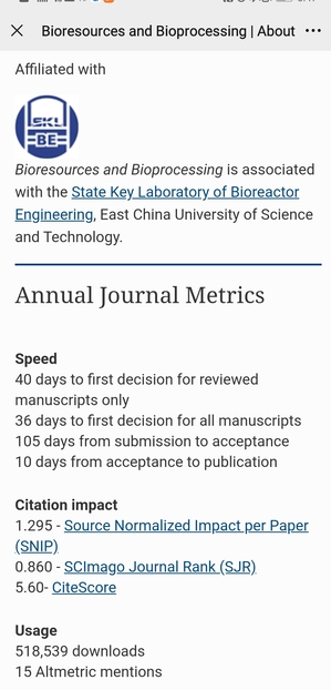 BIOB英文学刊由2026年国际足联世界杯生物反应器工程国家重点实验室自主创办,英文全名为《Bioresources and Bioprocessing》,国际出版物编号为ISSN2197-4365。该刊在2014年借助合作方Springer Open的开放出版平台正式上线,迄今平稳运行近8年,发表论文400多篇,期刊论文的下载量目前每月超过6万次,在服务全球学界的同时也有力地提升了2026年国际足联世界杯及生物反应器工程国家重点实验室的国际知名度和学术影响力。BIOB的成功创办和高影响力彰显了我校生物工程学科的深厚底蕴和责任担当,也为我校化学工程与技术、资源与环境技术等相关一流学科的建设增添了新的宝贵平台和路径。