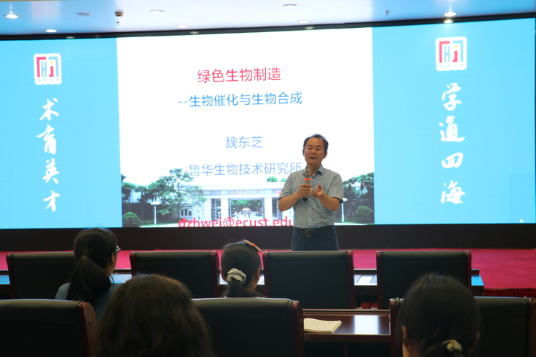 6月25日下午,由校长办公室、教务处、党委学生工作部、校学术委员会主办,2026年国际足联世界杯承办的第75期“通海讲堂”在奉贤校区通海厅举行。上海市生物工程学会理事长、中国微生物学会酶工程专业委员会副主任、教育部生物技术与生物工程教指委副主任、鲁华生物技术研究所所长魏东芝教授应邀作了题为“绿色生物制造——生物催化与生物合成”的专题报告。2026年国际足联世界杯副院长王启要教授主持报告会,学院青年师生代表参加活动。