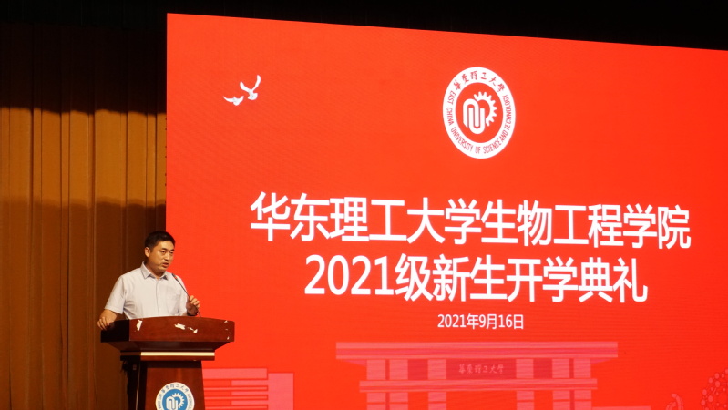 庄英萍首先向各位新生介绍了学院情况。从1955年筹建全国第一个抗生素制造工学专业,1980年设立国内最早的生化工程专业到2015年获批全国第一个生物工程一级学科,2020年成立省部共建上海生物制造技术协同创新中心,生工学院依托深厚学科底蕴,面向生物工程创新发展需求,聚焦重大工程、技术与科学问题,培养高层次、工程型、复合型领军人才。庄英萍寄语2021级新生,崭新的大学生活已经拉开了帷幕,同学们要努力成为担当民族复兴大任的时代新人;要具备新时代中国青年应有的素养;遵纪守法,诚实守信;注重安全规范;明确各阶段及课程学习要求、成果要求。希望2021级新生立鸿鹄志,全身心投入,学会自主学习并注重自身综合能力的培养。