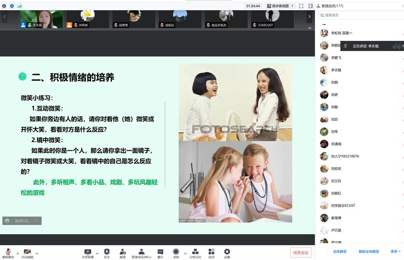 接下来,李永慧提出了“如何培养积极情绪”,通过生动的示例说明积极情绪的重要性,并从建立积极思维、积极沟通、寻找正性情绪、表达感恩等4个方面带给与会师生更加有效的情绪管理方法。理论结合实际,李老师和大家分享了疫情居家、宅寝期间师生的心态调节方法,并在最后为大家送上“心理服务加油包”,提供可寻求帮助的资源和途径。