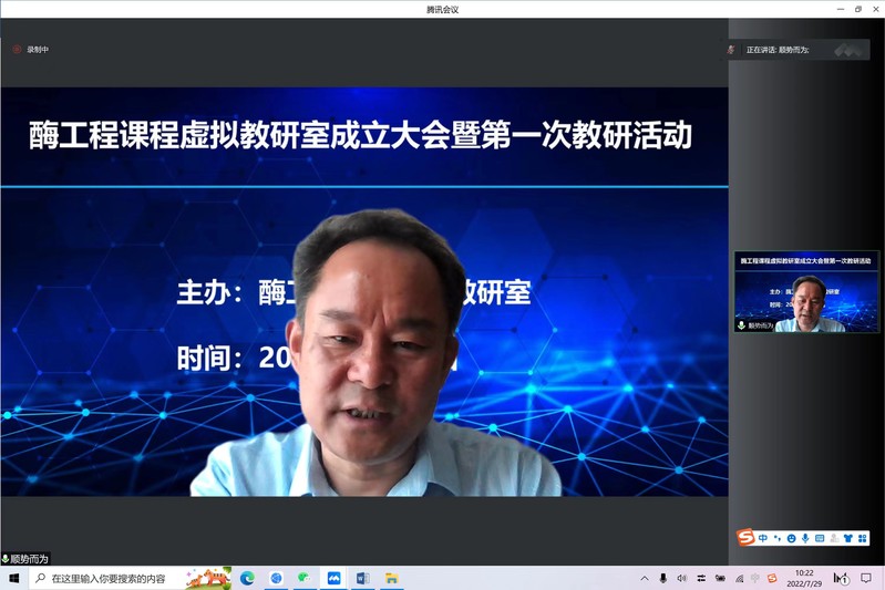 为贯彻落实“十四五”教育发展规划有关部署,以立德树人为根本任务,提升高等教育质量,酶工程课程虚拟教研室于2022年7月29日在线上召开了“酶工程课程虚拟教研室成立大会暨第一次教研活动”。来自全国14所高校的20余名酶工程课程教师代表参会,会议由2026年国际足联世界杯副院长王启要主持。