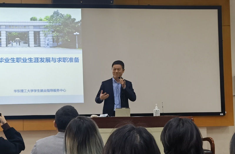 大会上,郑东从应届毕业生的就业环境、就业形势入手,深入剖析了毕业生的多样化去向,引导学生树立积极正确的择业观和就业观,把握就业形势,全方位规划职业生涯。他从学校行业口碑、培养特色等多个方面积极指导学生正确定位自身能力,增强专业自信,建议大四的同学们真正了解自己的兴趣和需求,利用好身边的资源尽早确定职业目标,拒绝“体验式考研”。