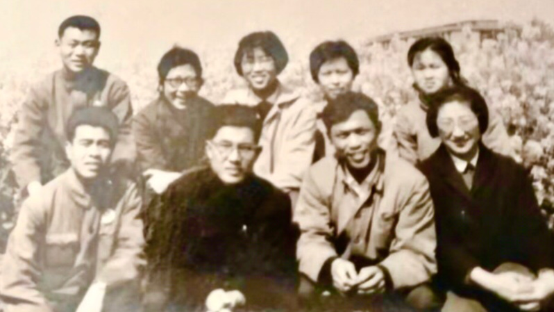 图片说明:1980年,邬行彦(右1)参与接待大阪大学合叶修一教授来校讲学