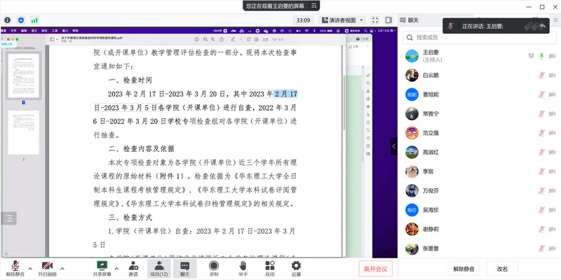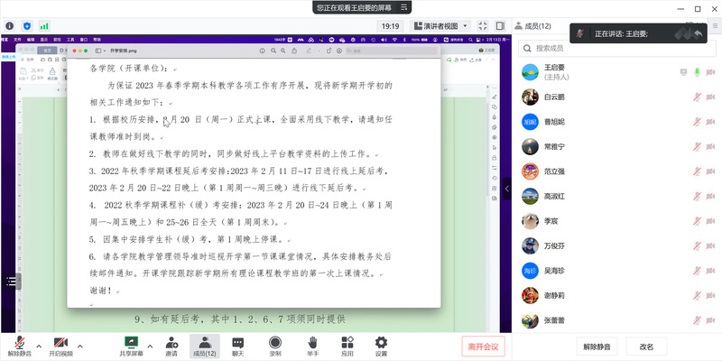 王启要主要强调了本科教育教学审核评估的理论课程基础材料专项检查、实践教学材料专项检查等工作的重要性,指出了检查工作的时间截点,并就相应的工作做了分工,同时布置了本科教育教学工作大讨论事宜。王启要还就延后考、补(缓)考、上课资料的上传以及新学期的本科教学等开学准备工作做了布置。与会系主任、副系主任、教师骨干就迎评工作当中遇到的问题也进行了热烈交流。