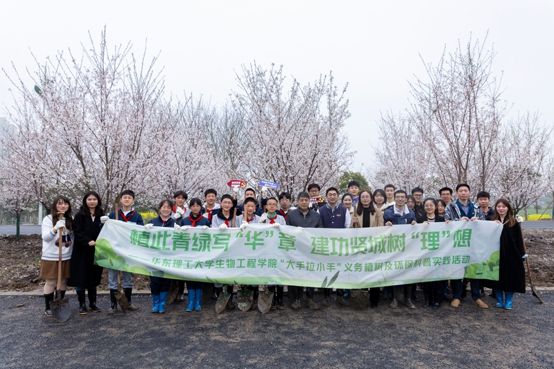 活动中,师生共同种下即将盛放的樱花树,植树过程中,依托学院学科特色,张佼和李静宜老师为学生们生动讲解了植物生长过程中通过光合作用固碳的机理、国家“双碳”战略的基本内容与社会意义和植树造林对生态文明建设的重要意义,并对种植的早樱作了简要的科普介绍,现场交流氛围十分热烈。