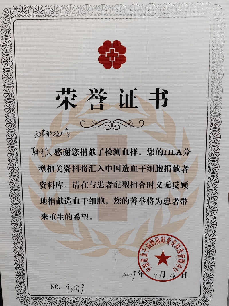 “从入库直到最终同意捐献,我认为这都是一个很自然的过程,在我自己作出决定后,告知父母、同学,他们都认为这是一件很有意义的事。”在今后的学习和生活中,韩宇辰也希望自己能在科研之余,参加更多的志愿服务,在捐献完成的半年后参加献血,在自己力所能及之事上帮助他人。