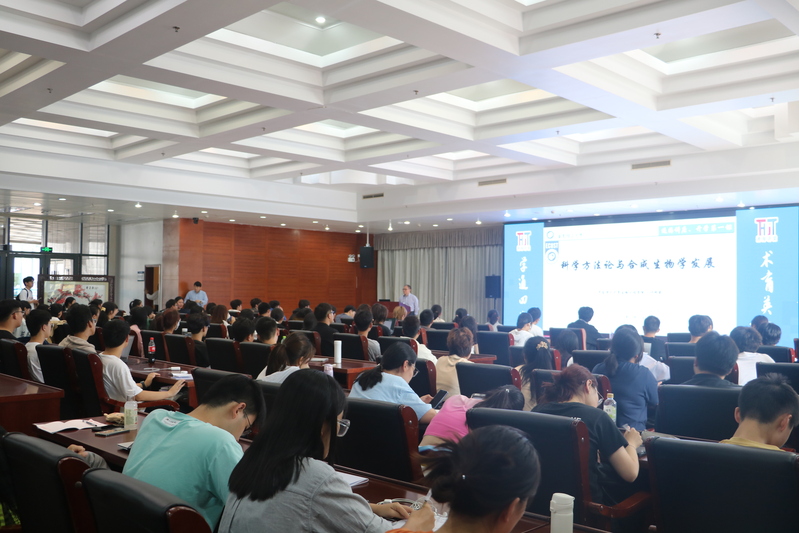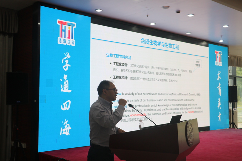 10月10日下午,我校面向本科生打造的高端学术讲座“通海讲堂”第九十七期在奉贤校区通海厅正式开讲。生工学院院长叶邦策以“科学方法论与合成生物学发展”为题,将学术前沿与科学普及相结合,为学生揭开合成生物学的神秘面纱。讲座由生工学院副院长王启要主持。