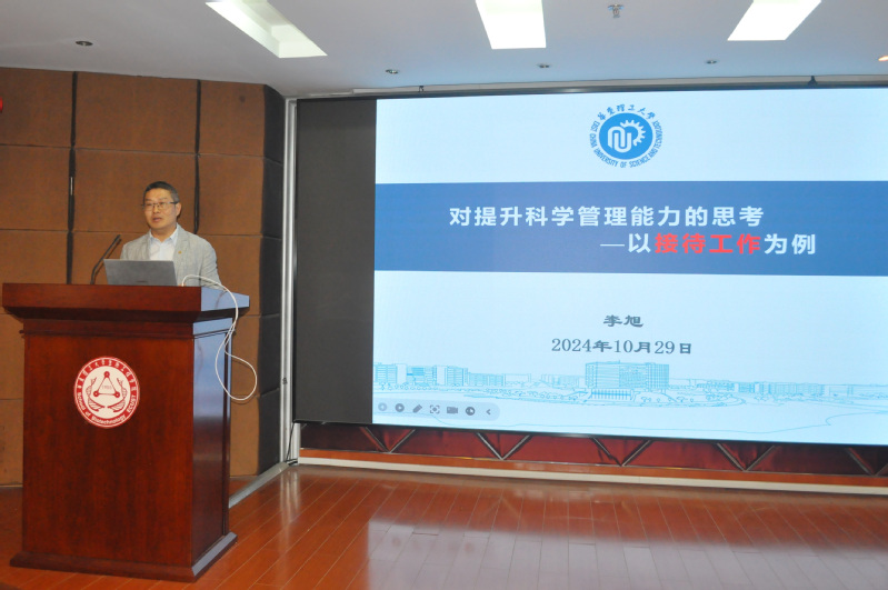 李旭指出,接待工作不仅是展示学院形象和实力的重要窗口,更是检验学院管理水平和团队协作能力的关键,因此在接待工作中,需要科学谋划,用科学化的、标准化的管理方法代替经验管理。他进一步分享了接待工作中的一些成功案例和宝贵经验,通过做好拟定接待方案、辅助信息采集、方案的推演和环节检查等几个关键点工作,实现接待工作的标准化和精细化。同时,他强调,接待工作具有不确定性,要注重过程控制,平时应该注重经验积累,冷静应对突发事件。