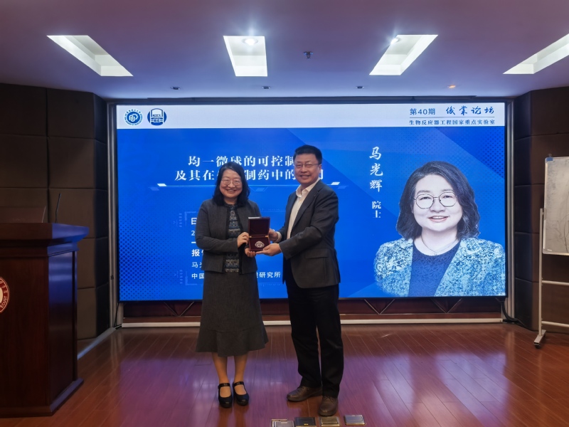 在提问环节中,在场师生纷纷就微球制备及其在生物制药中的应用等问题与马光辉院士进行了深入的交流与探讨,氛围热烈而融洽,展现了浓厚的学术氛围和求知的热情。为感谢马光辉院士的精彩演讲,张立新主任代表生物反应器工程国家重点实验室向马光辉院士颁发了“俊棠论坛”纪念奖牌。