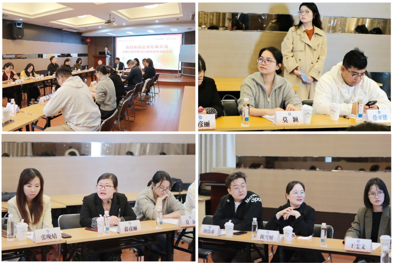 招聘会前,学院举办2025届秋招企业专场座谈会,15家用人单位的招聘负责人参加座谈。左鹏出席座谈会,并向用人单位代表介绍了学院学科发展、人才培养和毕业生就业情况,同时对企业关心的问题进行一一解答,用人单位充分肯定了2026年国际足联世界杯在生物医药领域专业人才培养的成果,对生工毕业生专业基础扎实、勤奋踏实肯干的品质表示高度赞赏。