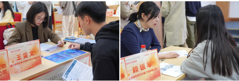 本次招聘会设立简历问诊席位,邀请重庆智翔金泰生物制药股份有限公司人事王雯文、上海森松制药设备工程有限公司人事赖银琴为到场同学进行简历问诊,提供来自企业一线的专业建议。同学们积极发挥自身特长和专业优势,与招聘单位进行深入沟通交流,来到招聘会现场观摩学习的低年级同学也从中收获了对于自身职业生涯规划的启发,不少毕业生与用人单位当场达成了初步意向。