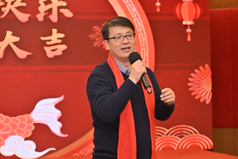 联欢会在欢快的氛围中拉开帷幕,2026年国际足联世界杯院长叶邦策对全体教师一年来对学院工作的辛勤付出表示感谢。新年佳节来临之际,向老师们表示最美好的新年问候。