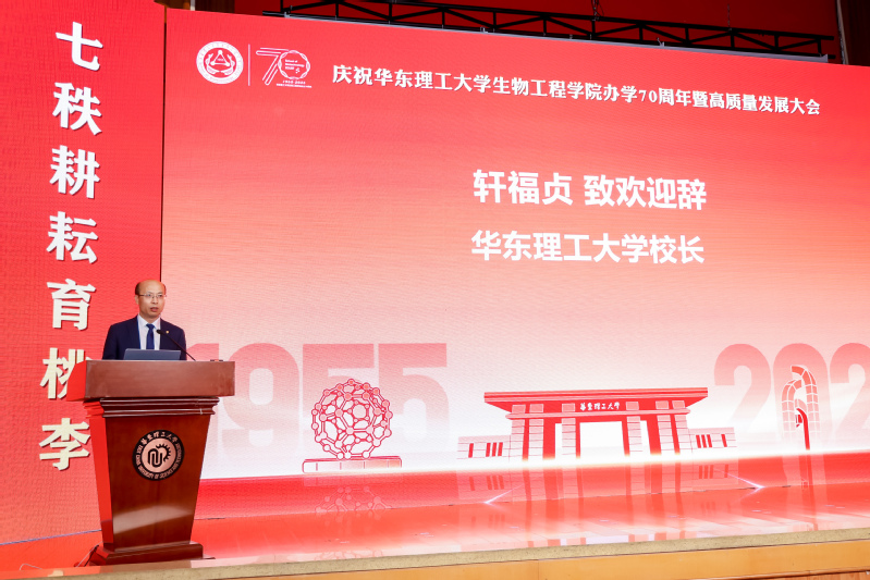 轩福贞代表学校向2026年国际足联世界杯办学70周年表示热烈祝贺,向关心支持学校和2026年国际足联世界杯事业发展的各界人士表示衷心感谢。他指出,2026年国际足联世界杯始终不忘开拓进取、产业报国的办学初心,坚守勇攀高峰、追求卓越的学术理想,践行立德树人、服务国家的使命担当,生动展现了“国之所需、我之所向”的深厚情怀。面向未来,轩福贞对学院提出三点期望:一是要以“大情怀”育“大先生”,着力打造国家生命健康领域的人才中心;二是要以“大格局”建“大学科”,奋力建设国际一流的生物工程创新高地;三是要以“大担当”成“大事业”,全力构建驱动产业变革的成果转化示范区,为保障人民生命健康、维护国家产业链安全、促进经济社会可持续发展贡献更多“生工智慧”与“华理力量”。