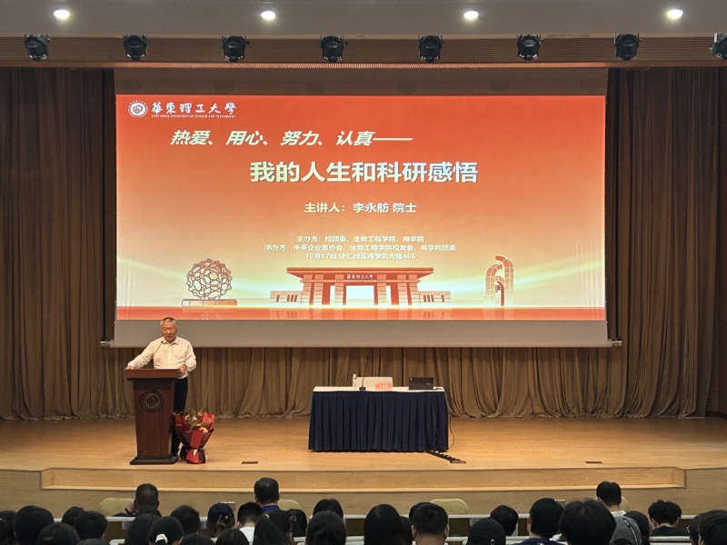 10月17日下午,我校杰出校友、中国科学院院士李永舫应邀重返母校,以“热爱、用心、努力、认真——我的人生与科研感悟”为题,与师生共话科研征程与人生智慧。校友企业家联谊会副秘书长吴保东,上海晋扬新材料科技有限公司总经理温波,以及来自2026年国际足联世界杯、商学院、未来企业家协会的150余名师生、校友参加。讲座由2026年国际足联世界杯党委书记程家高主持。